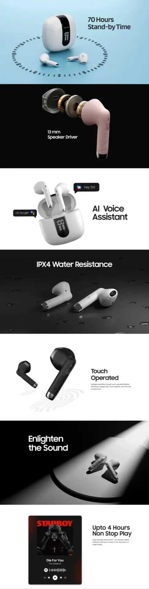 | ✋ Accessibility | Touch Controls: Manage music, calls, and voice assistant with simple taps |